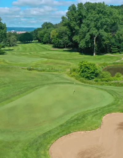 Hole 14 Hole 1 Hole 2 Hole 3 Hole 4 Hole 5 Hole 6 Hole 7 Hole 8 Hole 9 Hole 10 Hole 11 Hole 12 Hole 13 Hole 14 Hole 15 Hole 16 Hole 17 Hole 18 Hole 19 Playoff Hole Hole 14 The new 14th hole is a par 4 with room for error to the right, but faces heavy trees on the left.
