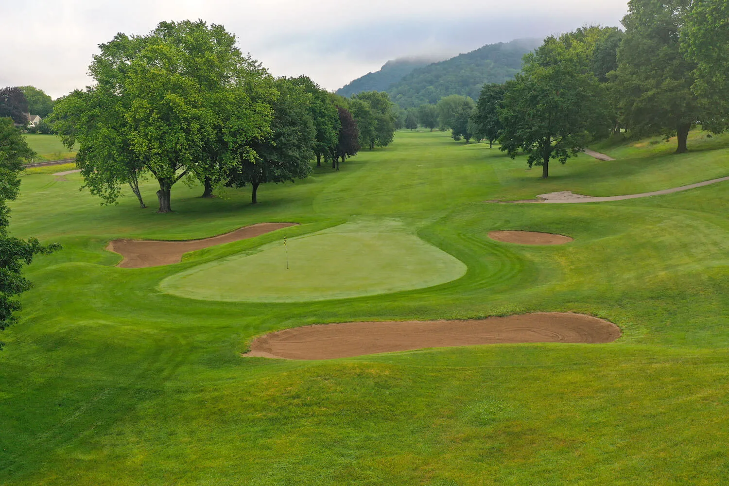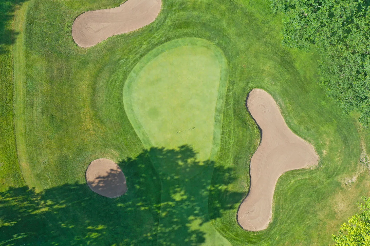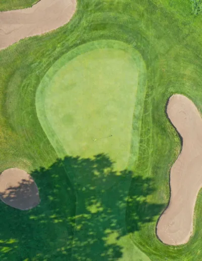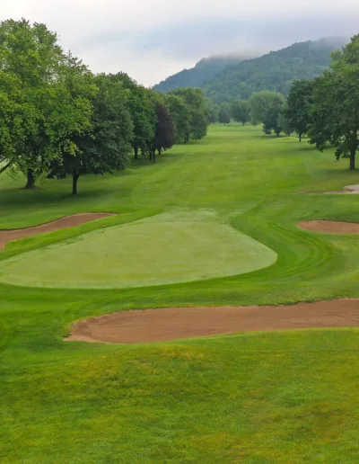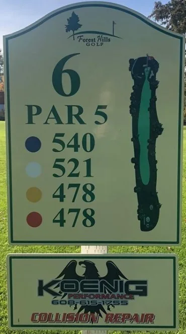 Hole 6 Hole 1 Hole 2 Hole 3 Hole 4 Hole 5 Hole 6 Hole 7 Hole 8 Hole 9 Hole 10 Hole 11 Hole 12 Hole 13 Hole 14 Hole 15 Hole 16 Hole 17 Hole 18 Hole 19 Playoff Hole Hole 6 The green on the only par 5 on the front nine will invite any golfer. Be careful, however; it is protected by three bunkers.