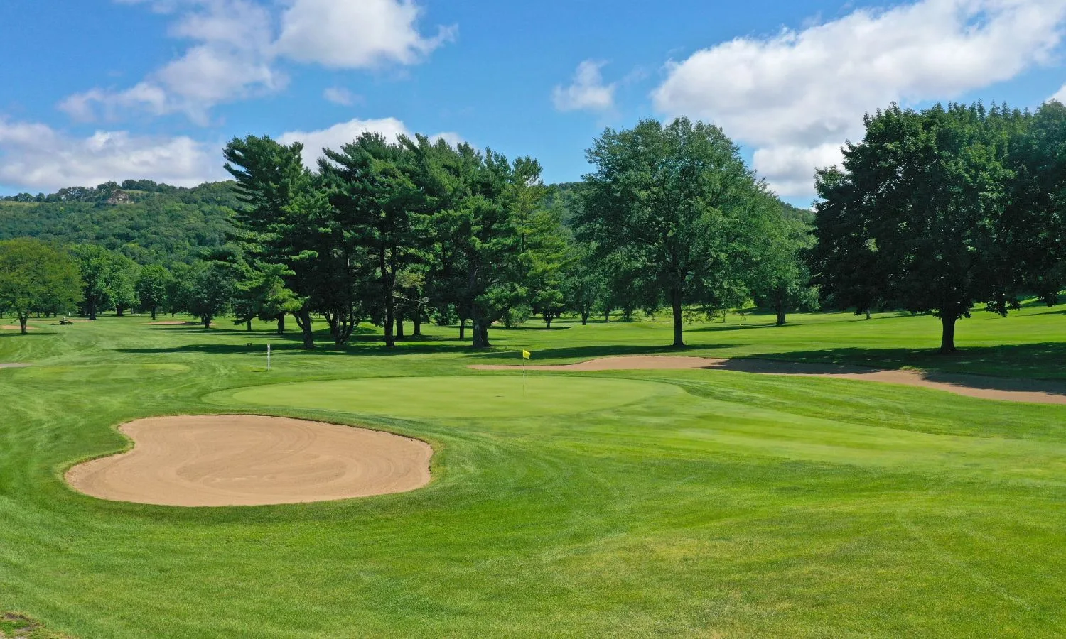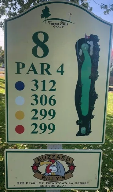 Hole 8 Hole 1 Hole 2 Hole 3 Hole 4 Hole 5 Hole 6 Hole 7 Hole 8 Hole 9 Hole 10 Hole 11 Hole 12 Hole 13 Hole 14 Hole 15 Hole 16 Hole 17 Hole 18 Hole 19 Playoff Hole Hole 8 With the green hidden behind a fairway wide ridge built up behind a sand trap 250 yards from the tee box, distance control is key. This hole is a par 4.